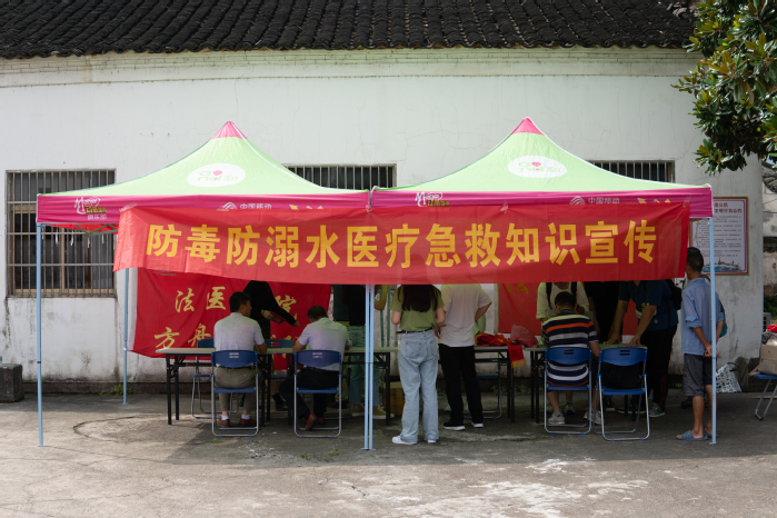 实践队在铁军广场设服务站,一部分队员在服务站向居民和游客开展安全急救知识宣讲,了解当地主要有哪些安全隐患,提供测量血压等医疗服务。另一部分队员走向一线,深入当地居民家中开展安全急救知识访谈、发放宣传资料,完成安全急救知识问卷。活动过程中,队员向当地居民和游客发放了夏季防暑用品带,方便当地群众的工作与生活。