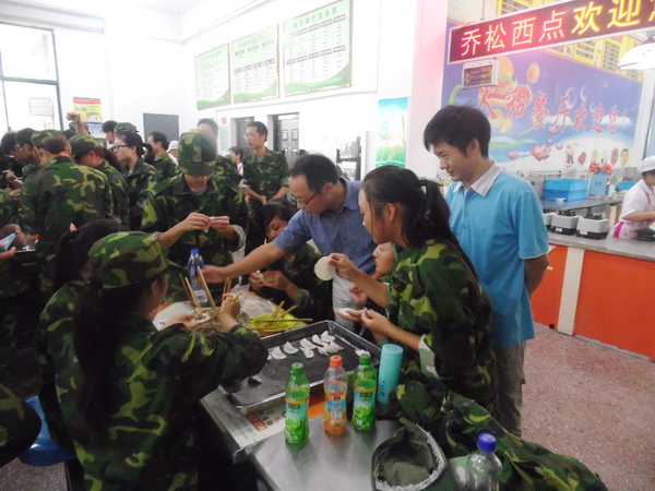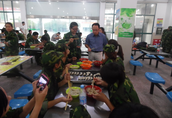 师生一起包饺子