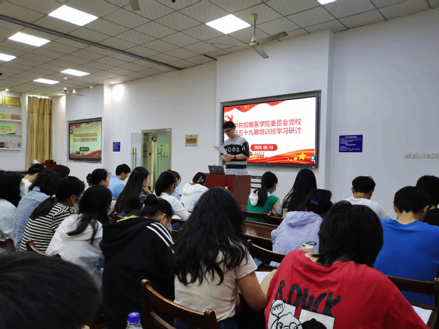 5月14日上午,党课班主任芮家慧组织入党积极分子就“如何端正入党动机”,发展对象就“对党员权利和义务的认识”、“如何做好新时代好青年”、“对开展主题教育重大意义的认识”分别进行专题研讨,学员们结合自己的实际积极准备并发言讨论。研讨结束后,芮家慧组织积极分子学唱《国际歌》,并观看《榜样7》。下午,组织党校结业考试,学员们遵守考场纪律,认真作答。