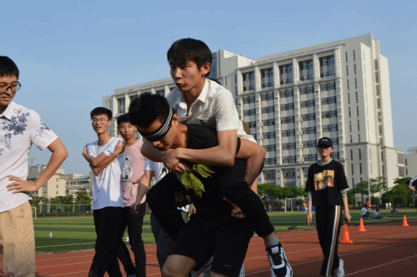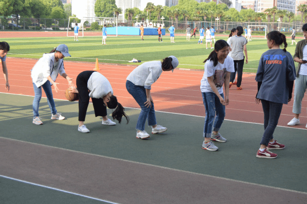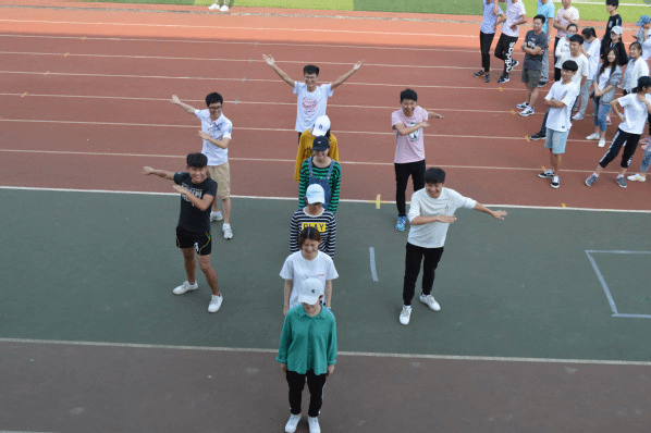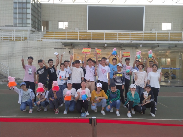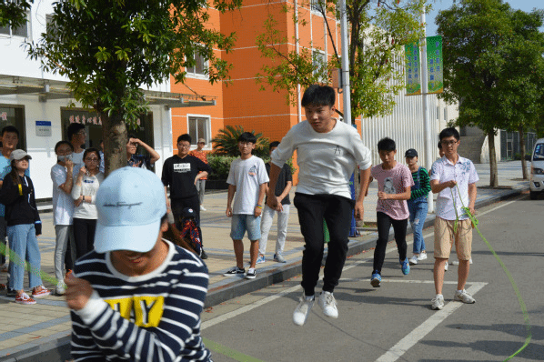 在开幕式结束后,趣味运动会正式开始。各参赛队伍按照人数随机分成六队,每队推选出一名队长,设计队名、队列,并按照时间计分制排名。首先进行的是“8”字跳绳比赛。这项运动考验的是选手们的体能、反应速度和队友间的配合。本着拼搏进取的精神,各参赛队员虽然来自不同年级,依旧配合默契。